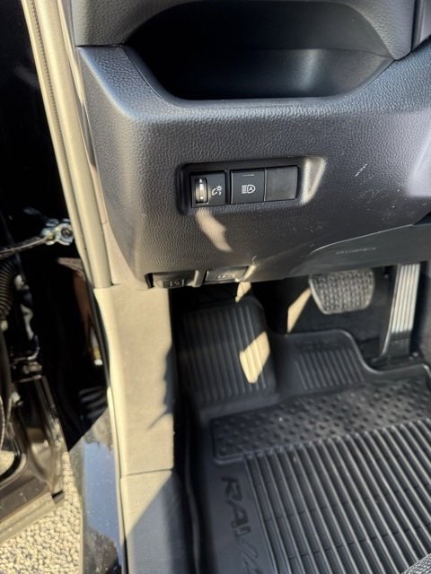 - Black carpet flooring with driver-side footrest