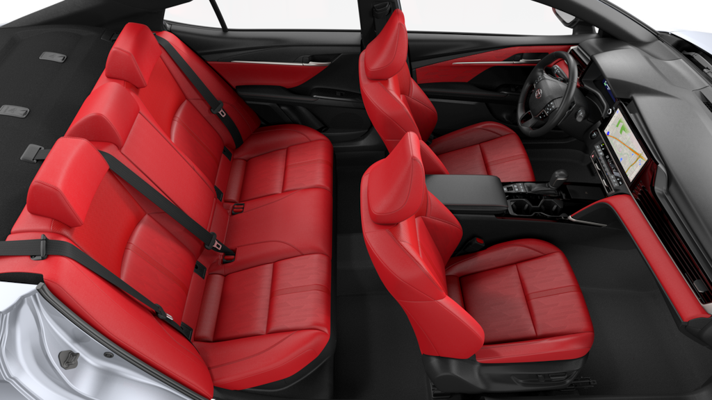 - Leather-trimmed front seats with seatback pockets 8-way power-adjustable front driver's seat with power lumbar support 8-way power-adjustable passenger front seat