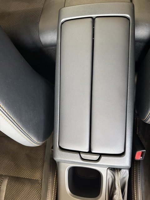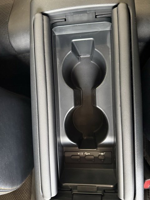 - Fixed center console with one open cup holder, covered storage compartment with two front cup holders, and two USB charging ports with auxiliary port
