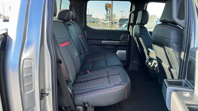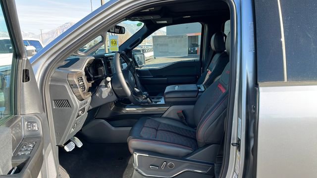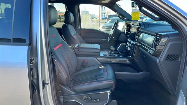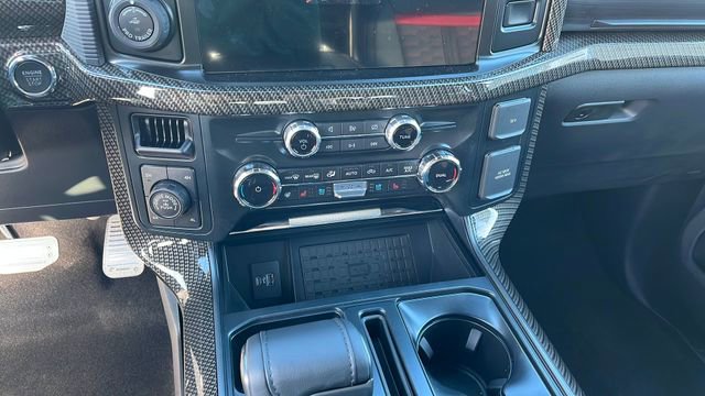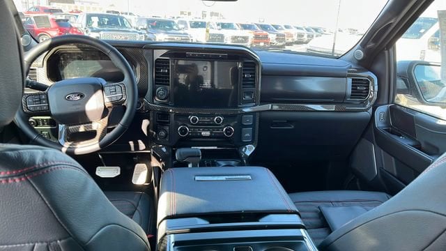 The interior of the 2024 Ford F-150 Lariat SHELBY 785 HP is a sanctuary of refined luxury and cutting-edge technology. Sink into the plush, leather-trimmed bucket seats and enjoy the comfort of heated and ventilated front seats, as well as the convenience of a mobile office package and wireless charging. The twin panel moonroof and the premium Bang & Olufsen sound system elevate your driving experience, creating an immersive and enjoyable journey.