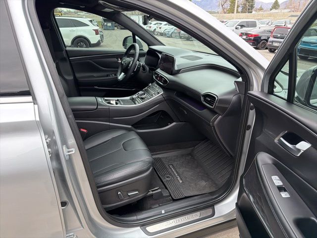 A 2023 Hyundai Santa Fe Calligraphy delivers a premium, near luxury experience wrapped in a practical midsize SUV. The Calligraphy trim sits at the top of the Santa Fe lineup, adding upscale design elements, advanced technology, and a refined driving feel. Its 2.5-liter turbocharged engine provides strong, confident acceleration, while the dual clutch transmission keeps shifts smooth and responsive. The ride quality is calm and composed, making it well suited for daily commuting and long highway drives.