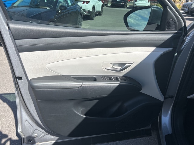 Option Group 01, 18" Alloy Wheels, 4-Wheel Disc Brakes, 6 Speakers, ABS brakes, Air Conditioning, Alloy wheels, AM/FM radio: SiriusXM, Apple CarPlay & Android Auto, Auto High-beam Headlights, Auto-dimming Rear-View mirror, Automatic temperature control, Brake assist, Bumpers: body-color, Cargo Tray, Carpeted Floor Mats, Delay-off headlights, Driver door bin, Driver vanity mirror, Dual front impact airbags, Dual front side impact airbags, Electronic Stability Control, Emergency communication system: Bluelink+, First Aid Kit, Four wheel independent suspension, Front anti-roll bar, Front Bucket Seats, Front Center Armrest, Front dual zone A/C, Front reading lights, Fully automatic headlights, H-Tex Seat Trim, Heated door mirrors, Heated Front Bucket Seats, Heated front seats, Illuminated entry, Leather steering wheel, Low tire pressure warning, Navigation System, Occupant sensing airbag, Outside temperature display, Overhead airbag, Overhead console, Panic alarm, Passenger door bin, Passenger vanity mirror, Power door mirrors, Power driver seat, Power Liftgate, Power moonroof, Power steering, Power windows, Radio data system, Radio: AM/FM/HD Audio System, Rear anti-roll bar, Rear reading lights, Rear seat center armrest, Rear side impact airbag, Rear window defroster, Rear window wiper, Remote keyless entry, Roadside Assistance Kit, Security system, Speed control, Split folding rear seat, Spoiler, Steering wheel mounted audio controls, Tachometer, Telescoping steering wheel, Tilt steering wheel, Traction control, Trip computer, Turn signal indicator mirrors, Variably intermittent wipers, and Wheel Locks.