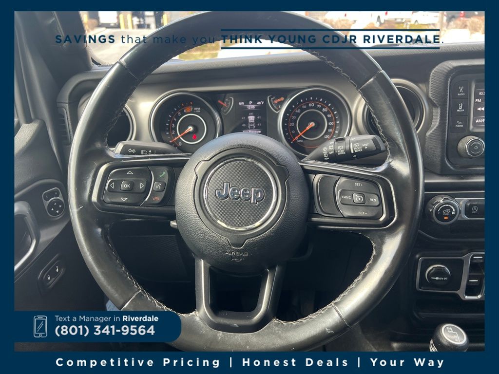 Slip behind the wheel and experience the Wrangler's legendary driving dynamics. The 2.0L Turbo engine and 8-Speed Automatic transmission provide a thrilling yet efficient ride, with an EPA-estimated 21 MPG city and 22 MPG highway. Enjoy the convenience of power windows, remote keyless entry, and a security alarm, all while staying connected with the Uconnect 3 infotainment system.