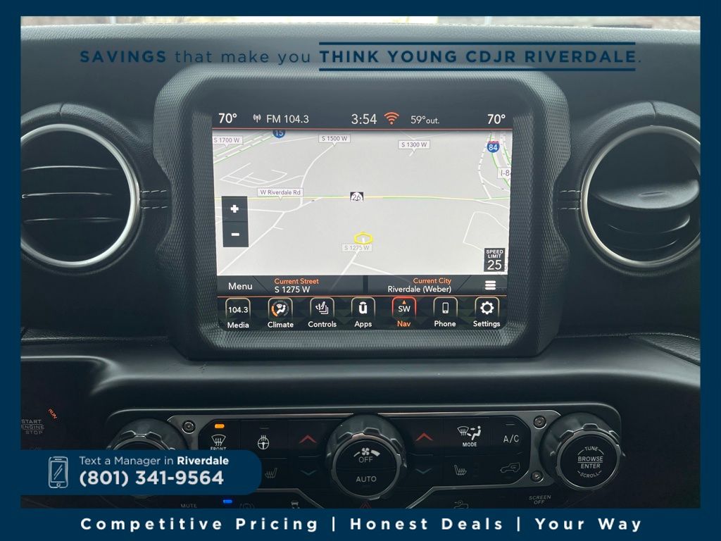 Step inside and you'll be greeted by a wealth of premium features, including a state-of-the-art Uconnect 4C Nav system with an 8.4" display, Apple CarPlay and Android Auto integration, and a premium audio system with 9 speakers. The Sahara's leather-wrapped steering wheel and shift knob, along with the heated front seats and steering wheel, provide a luxurious and comfortable driving experience, even in the coldest weather.