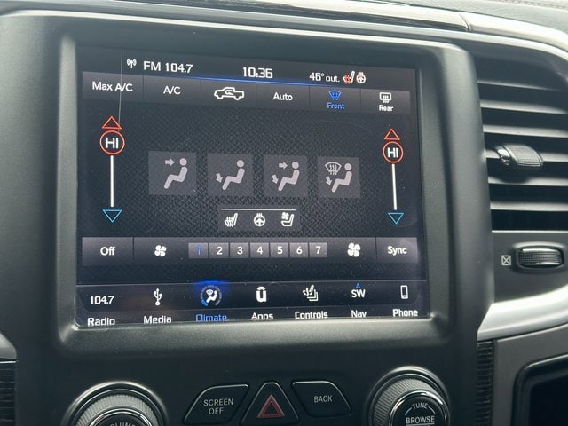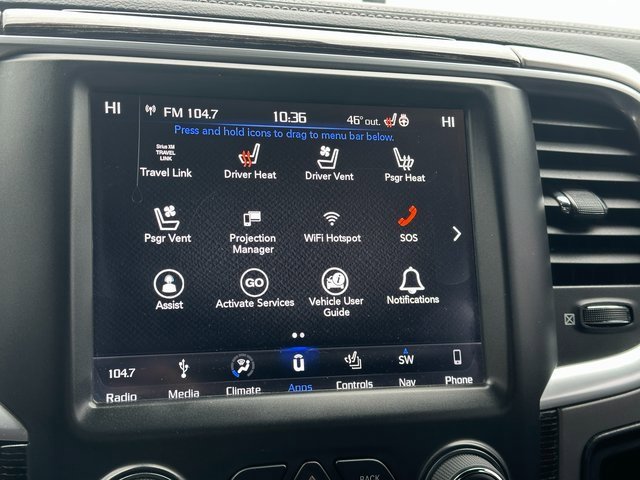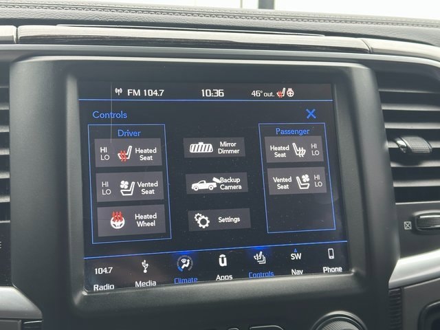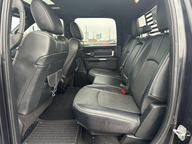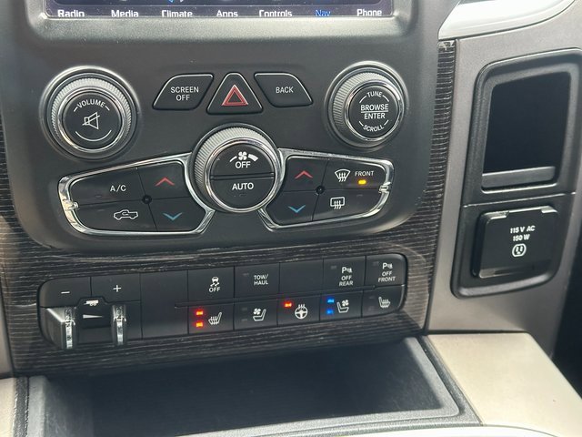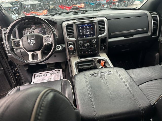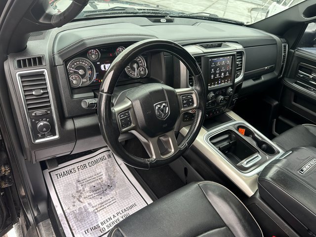 Odometer is 45488 miles below market average! BLUETOOTH, BACK UP CAMERA, APPLE CARPLAY/ANDROID AUTO, MOONROOF/SUNROOF, 10 Speakers, 115V Auxiliary Power Outlet, 4-Corner Air Suspension, 4-Corner Air Suspension Delete, 4-Wheel Disc Brakes, ABS brakes, Active Grille Shutters, Adjustable pedals, Air Conditioning, Alloy wheels, AM/FM radio: SiriusXM, Anti-Spin Differential Rear Axle, Apple CarPlay/Android Auto, Audio memory, Auto High-beam Headlights, Auto-dimming door mirrors, Auto-dimming Rear-View mirror, Automatic temperature control, Black Closeout Trim, Body Color Front Fascia, Body Color Rear Bumper w/Step Pads, Brake assist, Bucket Seats, Center Hub, Chrome Bodyside Molding, Chrome Ram Badge, Class IV Receiver Hitch, Compass, Delay-off headlights, Delete Spray In Bedliner, Driver door bin, Driver vanity mirror, Dual front impact airbags, Dual front side impact airbags, Electronic Shift, Electronic Stability Control, Electronically Controlled Throttle, Emergency communication system: SiriusXM Guardian, Folding Flat Load Floor Storage, Front anti-roll bar, Front Bucket Seats, Front Center Armrest w/Storage, Front dual zone A/C, Front fog lights, Front reading lights, Front wheel independent suspension, Fully automatic headlights, Garage door transmitter, Genuine wood dashboard insert, Genuine wood door panel insert, Heated door mirrors, Heated Front Seats, Heated front seats, Heated rear seats, Heated Second Row Seats, Heated Steering Wheel, Heated steering wheel, High Back Seats, Illuminated entry, Laramie Limited Cluster, Laramie Limited Group, Laramie Limited Leather Bucket Seats, Leather Shift Knob, Leather steering wheel, Leather Wrapped Grab Handle, Limited Tailgate Applique 4x4, Low tire pressure warning, Luxury Door Trim Panel, Luxury Front & Rear Floor Mats, Memory seat, Navigation System, Occupant sensing airbag, Outside temperature display, Overhead airbag, Overhead console, Panic alarm, ParkView Rear Back-Up Camera, Passenger door bin, Passenger vanity mirror, Pedal memory, Power 10-Way Memory Driver & 6-Way Passenger Seats, Power Chrome Trailer Tow Mirrors, Power door mirrors, Power driver seat, Power Lumbar Adjust, Power passenger seat, Power steering, Power Sunroof, Power windows, Premium Filigree Leather Seats, Quick Order Package 26V Limited, Radio data system, Radio: Uconnect 4C Nav w/8.4 Display, Rain sensing wipers, Ram 1500 Badge, Rear 60/40 Split Folding Seat, Rear anti-roll bar, Rear seat center armrest, Rear step bumper, Rear Window Defroster, Remote keyless entry, Security system, Speed control, Split folding rear seat, Steering Wheel Mounted Audio Controls, Steering wheel mounted audio controls, Tachometer, Tilt steering wheel, Tip Start, Traction control, Trailer Brake Control, Trailer Tow Mirrors, Trailer Tow Mirrors & Brake Group, Trip computer, Turn signal indicator mirrors, Variably intermittent wipers, Ventilated Front Seats, Ventilated front seats, Voltmeter, Wheel to Wheel Side Steps, Wheels: 20 x 9 Aluminum Polish/Brown Insert, Wheels: 20 x 9 Painted Aluminum Chrome Insert, Wood/Leather Wrapped Steering Wheel. Brilliant Black Crystal Pearlcoat HEMI 5.7L V8 Multi Displacement VVT 8-Speed Automatic 4WD